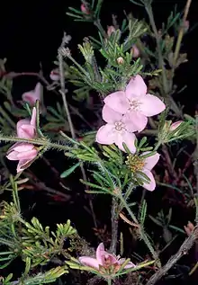Boronia albiflora is a plant in the citrus family, Rutaceae and is endemic to the south-west of Western Australia. It is a soft shrub with pinnate leaves and pink or pink and white, four-petalled flowers.