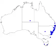 This boronia grows in dry forest and heath on sandstone in near-coastal areas between the Nowra district and Ballina.[3][4]