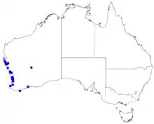 - ↑ Diels, Ludwig; Pritzel, Ernst (1904). "Fragmenta Phytographiae Australiae occidentalis. Beitrage zur Kenntnis der Pflanzen Westaustraliens, ihrer Verbreitung und ihrer Lebensverhaltnisse". Botanische Jahrbücher für Systematik, Pflanzengeschichte und Pflanzengeographie. 35 (2): 318. Retrieved 11 February 2019.