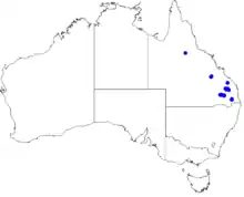 This boronia grows in woodland between Chinchilla and Dalby.[4]