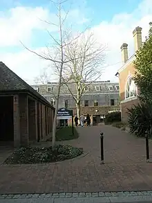 For the first six years of its existence, the council was based outside the district at the former Hambledon Rural District Council's offices at Bury Fields in Guildford.[5] In April 1980, the council moved to purpose-built headquarters at The Burys in Godalming, behind Godalming Borough Hall.[6][7] The district was awarded borough status on 21 February 1984, allowing the chair of the council to take the title of mayor.[8][9]