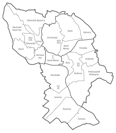 - ↑ "O Bratislave - mestské časti (About Bratislava - boroughs)" (in Slovak). City of Bratislava. 2002. Archived from the original on 16 June 2007. Retrieved 2 July 2007.