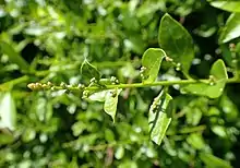Bosea cypria is a species of flowering plant in the Amaranthaceae family.[1][2][3] It is a highly branched, evergreen shrub, 1–2 m high, erect, suberect, or hanging on walls, cliffs or trees, with hairless angular shoots. Leaves, opposite, simple, entire-+ elliptical, 2-6 x (1-2-3) cm, hairless, petiolate, dark green, occasionally red green. Flowers in branched spikes, hermaphrodite or unisexual 5-merous, very small, green brown, the floral symmetry is actinomorphic. The fruit is a globose red berry. Flowers from April to July. It is endemic to Cyprus and in the local Greek Cypriot dialect it is called ζουλατζιά (translit: zoulatzia)[4]