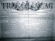 The Boston True Flag (1851-1908) or True Flag was a weekly fiction periodical published in Boston, Massachusetts, in the 19th century.[1][2] Contributors included Francis A. Corey,[3] Susan E. Dickinson,[4] Fanny Fern,[5] Louise Chandler Moulton,[6] Oliver Optic,[7] and John Townsend Trowbridge.[8] Publishers William U. Moulton, J. R. Elliott, Martin V. Lincoln, and J. W. Nichols produced the paper from offices on School Street (c. 1852–1864),[9] Bromfield Street (c. 1868–1884),[10][11] and Arch Street (c. 1887–1908).[12][13][14]