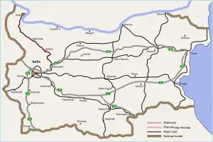 The Vidin-Botevgrad expressway (Bulgarian: Скоростен път „Видин-Ботевград“, romanized: Skorosten pat "Vidin-Botevgrad") is a planned expressway in Bulgaria, that will link the A2 Hemus motorway with Vidin and the New Europe Bridge, at the Danube border crossing to Romania. The expressway shall provide grade-separated dual carriageway with two lanes in each direction and it shall replace or supersede the existing I-1 road.