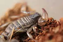 Bothriurus coriaceus (Chilean scorpion) is a species of scorpion native to Chile in the Coquimbo region specifically in the northern dunes. They are not communal and are rumored to dislike the heat and will burrow deep into the ground to get cool. 20 °C - 68 °F is said to be their preferred temperature, a much cooler temperature than most scorpion species, and have actually been known to die in higher temperatures. In addition to living in lower temperatures they also prefer lower humidity than most species of scorpion.[1][2][3]