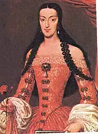 Born as Archduchess María Teresa of Austria, Infanta of Spain at the Royal Monastery of El Escorial, María Teresa thus combined the blood of Philip III of Spain and Margarita of Austria, on her father's side, and that of Henry IV of France and Marie de' Medici, on her mother's side. In his turn, Philip III was the son of Philip II of Spain and Anna of Austria who was, herself, a daughter of Maximilian II, Holy Roman Emperor and Maria of Spain. Philip II and Maria of Spain were siblings, being both children of Charles V, Holy Roman Emperor and Isabella of Portugal. María Teresa, therefore, like many Habsburgs, was a product of years and generations of royal intermarriage between cousins.