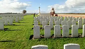 The Bouzincourt Ridge Cemetery is a military cemetery located in the Somme region of France commemorating British and Commonwealth soldiers who fought in World War I. The cemetery contains mainly those who died capturing the village of Bouzincourt between June and August 1918 and those who died on the front line near Bouzincourt.[1]