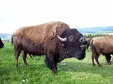 The tribe Bovini, or wild cattle, are medium to massive bovines that are native to Eurasia, North America, and Africa. These include the enigmatic, antelope-like saola, the African and Asiatic buffalos, and a clade that consists of bison and the wild cattle of the genus Bos.[3][4] Not only are they the largest members of the subfamily Bovinae, they are the largest species of their family Bovidae. The largest species is the gaur (Bos gaurus), weighing up to 1,500 kg (3,300 lb).[5]