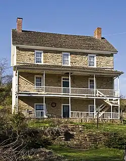 The Bowlus Mill House is a historic home and farm complex, located at Spoolsville, Frederick County, Maryland, United States. It consists of the house built of narrow courses of flat cut stones, a frame bank barn on a stone foundation, and a small frame shed. The 2+12-story house with an exposed basement was built about 1800, and reflects the Germanic influence typical of the region in the period.[2]
