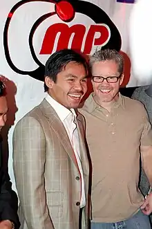 Because of Pacquiao's reluctance to submit to random blood testing to the extent requested by Mayweather, despite lack of evidence, the Mayweather camp repeated their suggestion that Pacquiao was using banned substances, which resulted in Pacquiao filing a lawsuit for defamation, seeking damages in excess of $75,000.[94] The lawsuit cited accusations made by Floyd Mayweather Jr., Floyd Mayweather Sr., Roger Mayweather, Oscar De La Hoya and Golden Boy Promotions CEO Richard Schaefer.[95][96]