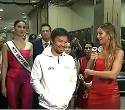 ![]() Pacquiao making his ring entrance for his fight against Keith Thurman, 2019 | |