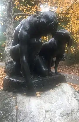 Boy and His Dog Sculpture or Storrow Memorial is a 1923 statue by Cyrus Dallin, located in a prominent location in Lincoln Cemetery.[1] It portrays a young man bending down to pick a flower with a dog gazing up into his visage. It was created at the request of Helen Osborne Storrow as a memorial to her husband James Jackson Storrow.[2] The Storrows are interred 30 feet north of the monument across a small road in a grave overlooking a picturesque pond.