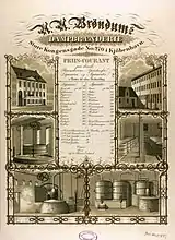 In 1842, Anders Antonsen Brøndum (1791–1861) purchased the property.[7] Anders Brøndum was the younger half-brother of Christen Brøndum. He had owned the distillery Paradis on Store Kongensgade from 1819 and was also the owner of the inns and associated distilleries Roskilde Kro (from 1838),[8] Store Kro in Kongens Lyngby and Bagsværd Kro in Bagsværd. He initially operated the property in Store Kongensgade as a brewery specializing in bavarian beer.[9] In 1844, Brøndum converted the brewery into a distillery and yeast factory.