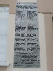 In first days of occupation, Đurđević family were sentenced to death and shot on January 17, 1942 in Dudik, location near Vukovar where 455 victims were executed.[7] In the spring of 1944, Vaso Đurđević-Turčin, the last of Đurđević brothers, leader of Bršadin partisan and People's hero. In his honor, today at the center of village stands remembrance monument.