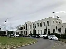Ainslie School fronts onto Donaldson Street is one of Canberra's oldest schools.[17] It was opened in 1927 as the first official act of the Prime Minister Stanley Bruce following his arrival in Canberra.[17] It is described by the ACT Heritage Commission as having "a high degree of integrity with intact street and site planting and relatively intact built elements and original internal fittings in the Art Deco style." It is also believed to be "the first in Australia to be planned with a library, a lecture room and a needlework room". The original building was completed in 1927 and, with the opening of a larger building for the primary in 1938,[9] it became the infants school. From 1980, the building was occupied by Questacon (until 1988) and the School Without Walls (until 1997). In recent years it has been occupied by the Ainslie Arts Centre.[18]