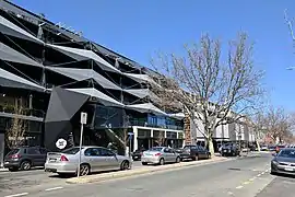 Historically an industrial area comprising car yards and factories, Lonsdale Street has in recent decades transformed into a cosmopolitan hub and the commercial centre of Braddon.[30][31] Lonsdale Street is home to shops selling items by original Canberra designers, stylish Australian fashions, imported designer shoes and handcrafted gifts and homewares. There is also a mix of restaurants,[32] bakeries,[33][34] bike shops,[35] food vans,[36][37][38] camping stores, car yards and hairdressing salons.