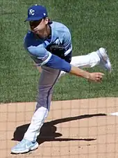 Singer was activated onto the Royals roster at the beginning of the 2020 season and made his Major League debut on July 25, 2020, against the Cleveland Indians, and pitched five innings of two-run ball in a no-decision. He was the first pitcher from the 2018 draft class to make it to the majors and second player overall after Nico Hoerner. On September 10, 2020, he allowed no hits through 7.2 innings while playing against the Cleveland Indians until he gave up a hit to Austin Hedges in the bottom of the 8th. In his next start against the Detroit Tigers, Singer fell one pitch short of an immaculate inning, when Miguel Cabrera fouled off Singer's ninth pitch of the inning. Cabrera then struck out on the next pitch. With the 2020 Kansas City Royals, Singer appeared in 12 games, compiling a 4–5 record with 4.06 ERA and 61 strikeouts in 64+1⁄3 innings pitched.[22] In 2021, Singer started 27 games for the Royals and went 5-10 with a 4.91 ERA, 131 strikeouts, and 53 walks over 128+1⁄3 innings. He opened the 2022 season in Kansas City's bullpen.[23] He was optioned to the Triple-A Omaha Storm Chasers in late April.[24]