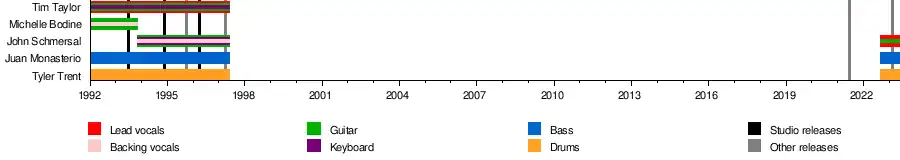- Tim Taylor – vocals, guitar, keyboards (1992–1997; died 1997)