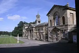 Situated at the rear of the house, the chapel, was built around 1760 by James Paine for George Fox Lane in the local Magnesian limestone ashlar. It was constructed in the classical style as a single unit of 2 storeys and 3 bays and with a porch and four Ionic columns across the full width of ground floor.[12]
