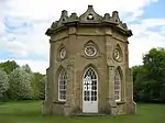 South of the house stands the Gothic Temple, also constructed of Magnesian limestone ashlar in the 18th century. Built in a Gothic style in two storeys it is octagonal in plan with buttresses at each corners.[13]