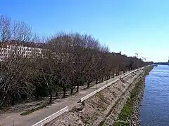 - From Karloveská bay to the Lafranconi Bridge. Named Nábrežie Ľubomíra Kadnára, it consists partially of a bike path and partially of a narrow dirt road winding through the semi-preserved riparian forests. The area features the Museum of the Bratislava Water Company, the Botanical Garden of the Comenius University and the canalised outlet of the river Vydrica. The area also features a complex of water sports facilities (especially kayaking) with many local sports clubs present here.