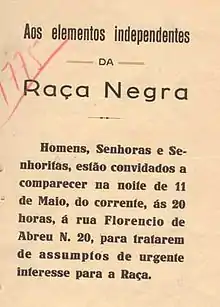 - ↑ "Os pontos de vista da "Frente Negra Brasileira" de S. Paulo em face do actual momento nacional" [The points of view of the "Brazilian Black Front" in face of the present national moment.]. A Batalha (in Portuguese). Rio de Janeiro. November 12, 1932. Retrieved April 10, 2023.