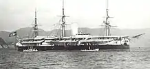 Aquidabã (Portuguese: [akidaˈbɐ̃]), anglicized to Aquidaban, was a Brazilian ironclad battleship built in the mid-1880s. The ship participated in two naval revolts; during the second she was sunk by a government torpedo boat. After being refloated, Aquidabã was sent to (Germany) for repairs and modernization. During a routine cruise in 1906, the ship's ammunition magazines exploded, which caused the vessel to sink rapidly with a great loss of life.