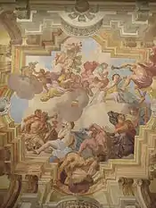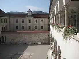 In addition to filling in the moats, a terrace was built up beneath the south wing, making room for orchards and gardens. Around 1720 the west wing was remodeled, and a great staircase and chapel built, the walls of each being decorated by Styrian painter Franc Ignac Flurer between 1715 and 1732. The Attems had the castle re-roofed in the second half of the 18th century; the towers were given mansard roofs at the same time.