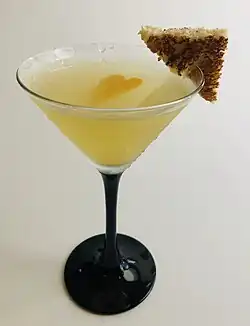 A breakfast martini is a marmalade cocktail with gin, marmalade, orange liqueur, and lemon juice (in place of vermouth), created by bartender Salvatore Calabrese.[1]