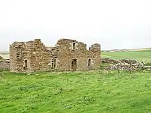 Breckness House is the ruined two-storey mansion built by the Bishop of Orkney, George Graham in 1633. It can be found on the southwest coast of Mainland, Orkney, about 3 km west of the town of Stromness. The house is a large L-shaped building and was built with rubble and clay. The remaining walls stand two storeys high. The house's central block measures 6.89 m (22.6 ft) by 12.67 m (41.6 ft). A wing to the central structure extends 8.10 m (26.6 ft) north at the east end of the central building and is 7.28 m (23.9 ft) wide. There is an enclosure visible on the south of the house that was most likely a garden.[1][2]