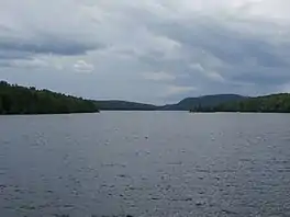 The lake is surrounded by 450 hectares of protected land of which "The Wolfe County Hunting and Fishing Club", founded in 1898, largely owns. The shores around the lake are almost entirely natural; only 40 chalets were built there. The lake receives the discharge from Sunday Lake to the south and is bordered to the north by route 263.[2]