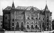 The New Exchange (Neue Börse) on the Marktplatz was a large Neo-gothic building with two towers and a passage to the Schütting (the offices of the Bremen Chamber of Commerce). The interior was decorated by many of the most well-known artists of the time, including the painters Arthur Fitger and P. Janssen and the sculptor Diedrich Samuel Kropp among others. The building included a great hall, several counting rooms, a meeting room, and offices which were also used by the Bürgerschaft of Bremen. In addition there was a restaurant in the basement, which is still in operation.