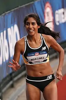 Brenda Martinez (born September 8, 1987) is an American middle-distance runner and Olympian. Born in Upland, California, she won a silver medal in the 800 meters at the 2013 IAAF World Championships in Moscow[1] and finished first in the 800 meters at the 2014 Diamond League Final. She represented the US at the 2012 IAAF World Indoor Championships in the 1500 meters. Martinez twice set the world record in the Distance Medley Relay at the New Balance Indoor Grand Prix in Boston; first on February 7, 2015, and then breaking her own record on January 28, 2017.[2][3] In 2016, Martinez qualified for the U.S. Olympic team competing in the 1500 meters after beating Amanda Eccleston by 0.03 seconds.