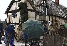 The BBC has also used the Fleece Inn and the surrounding village green for its 1993 £5 million production of Charles Dickens' Martin Chuzzlewit where the pub was renamed the "Blue Dragon" for the duration of shooting.[21][22]