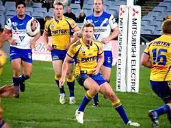 He got his revenge beating his old team, Parramatta, in the 2009 NRL Grand Final, setting up two tries.[8] However, the NRL later discovered significant salary cap breaches and stripped the Melbourne club of this win. This made it third time unlucky for Finch, having lost two Grand Finals with the Roosters (2003 and 2004). Despite the club being stripped of the 2009 premiership, Finch maintained the belief years later that their grand final victory was legitimate and that he is a premiership winning player.[9]