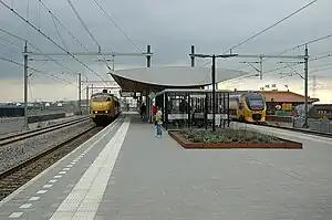 Breukelen is a railway station located in Breukelen, Netherlands. The station was opened on 18 December 1843 and is on the Amsterdam–Arnhem railway. It is also the northern end of the Harmelen–Breukelen railway. A new station was opened in 2002 nearer the A2 motorway and further from the town. For this the junction with the line to Harmelen and Woerden also moved.