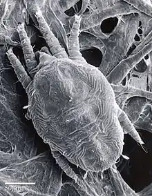 - ↑ Whitfield, John (2001). "Single mite female". Nature. doi:10.1038/news010705-1.