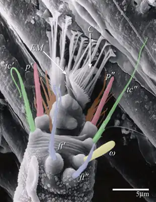 - ↑ Rodrigues, Jose Carlos Verle; Childers, Carl C. (2013). "Brevipalpus mites (Acari: Tenuipalpidae): Vectors of invasive, non-systemic cytoplasmic and nuclear viruses in plants" (PDF). Experimental and Applied Acarology. 59 (1–2): 165–175. doi:10.1007/s10493-012-9632-z. PMC 3545198. PMID 23203501.