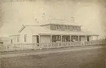 The 1870s were something of a boom time for Brewarrina. The courthouse was built in 1871.[15] The Telegraph reached town in 1873. The Mechanics Institute formed in 1873. The following year two hotels, two stores and the Commercial Bank all opened, and in 1875 The Parish of Brewarrina was formed and public school was opened. All this development was largely due to Cobb and Co, which had a number of coach services passing through the town. There was a service from Byrock, one from Dubbo via Warren and, in 1874, a direct service from Brewarrina to Enngonia, north of Bourke. The number of people moving through the town at this time would have been considerable and would have given rise to the increase in stores and hotels.