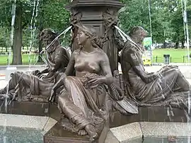 At least sixteen other copies exist, including one on Av. Cordoba y Cerrito in Buenos Aires and in Salvador de Bahia, Brazil.[2][3] The fountain is decorated with the figures of Neptune, Amphitrite (Neptune's wife), and Acis and Galatea, a couple from Greek mythology.[4] It fell into disrepair and finally stopped functioning entirely in 2003. A major repair project began in 2009.[5] After a year-long $640,000 off-site restoration led by sculpture conservator Joshua Craine of Daedalus Inc., it was re-dedicated on May 26, 2010.[6]