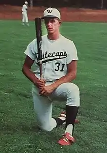 The 1988 Whitecaps team was led by skipper Joe Walsh, and featured future major leaguers Mike Myers and F.P. Santangelo. The undisputed star of the team was slugging first baseman Dave Staton. Staton ushered in the Whitecaps era with an opening-day performance marked by two home runs and six RBI. In a season when the CCBL featured a glut of future major league talent, including sluggers such as Frank Thomas and Mo Vaughn,[30] Staton led all with 16 homers and 46 RBI, and was named league MVP. He posted a .772 slugging percentage, and missed capturing the league's triple crown by just two points, his .359 average falling just shy of Chuck Knoblauch's .361 mark. Staton was inducted into the CCBL Hall of Fame in 2004.[31]