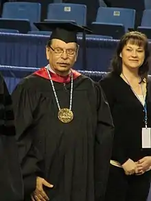 Brian Rogers (left) in May 2014, presiding over UAF's commencement ceremony.