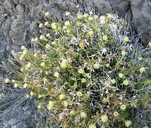 Brickellia atractyloides is a shrub up to 50 cm (20 inches) tall. It produces many small flower heads with cream-colored or pale green disc florets but no ray florets.[5]