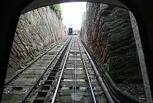 The Bridgnorth Cliff Railway, also known as the Bridgnorth Funicular Railway or Castle Hill Railway, is a funicular railway in the town of Bridgnorth in the English county of Shropshire. The line links the Low Town of Bridgnorth, adjacent to the River Severn, with the High Town, adjacent to the ruins of Bridgnorth Castle. It is currently non-operational pending repairs to a retaining wall.