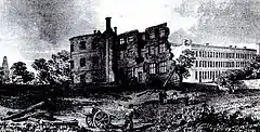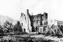 Remains of the mansion on the site of the castle keep — mid C18. A lithograph after a painting by John Chubb (1746–1818)