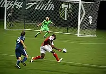 Dike playing for the Timbers