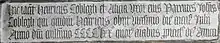 - ↑ Inscribed with the following Latin text in gothic lettering: