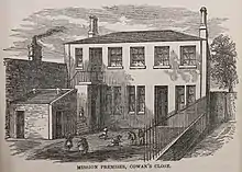 For a year, the two factions worshipped together in Bristo but relations were tense: each used its own collection plate and members of each faction broke into the church to try and change the locks.[22][23][24] During periods of expulsion from Bristo, the Burgher faction met at Carrubber's Close in the Old Town and at Bainfield House, West Fountainbridge.[25] The issue had to be settled by the Court of Session, which, finding the congregation had not been a "body corporate" at the time it purchased its lands in Bristo, ruled that the buildings were legally the property of two Burgher trustees. The Anti-Burgher congregation was thus expelled in January 1753. They founded a new church nearby at Quarry's Close off Crosscauseway.[26][27][28]