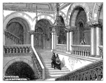 The foyer building with the grand staircase and the smaller hall (the Lesser Colston Hall, now the Lantern) were opened in 1873.[14] A meeting calling for women's suffrage was held at the hall in November 1880.[15]